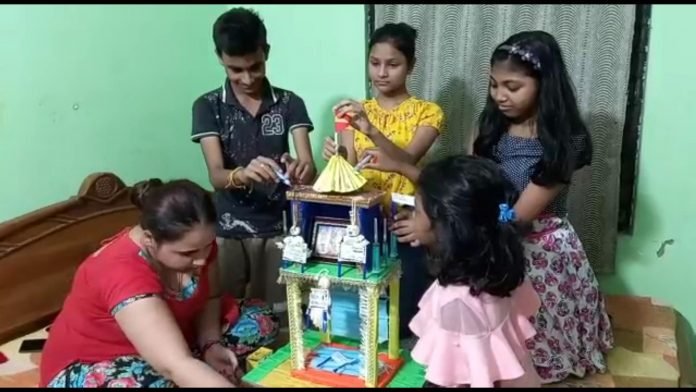 শিলিগুড়িতে ভারত নগরে ছোটদের উদ্যোগে তৈরী হচ্ছে এমনই একটা রথ। রথ সাজাতে নাওয়া খাওয়া ভুলেছে প্রেরনা, বিনিতা, অরিত্র, বর্নালী, সায়নীরা। রথ সাজাতে ব্যবহার হচ্ছে সিরিঞ্জ, মাস্ক ইত্যাদি। রথের গায়ে সাজানো থাকছে হাতে প্ল্যাকার্ড ধরা উলের পুতুল। তাদের হাতেই লেখা সচেতনতার বার্তা। কোনও পুতুল জানান দেবে মাস্ক পড়ুন। কেউ আবার বলবে অবিলম্বে ভ্যাকসিন নিন। আবার কোনো পুতুল বার্তা দেবে সামাজিক দুরত্ব বজায় রাখুন। সোমবার সামাজিক দুরত্ব বজায় রেখেই রাস্তায় নামবে কচিকাচাদের এই রথ। রথের দড়ি টানতে যারা ভিড় জমাবেন তাদের দেওয়া হবে মাস্ক।