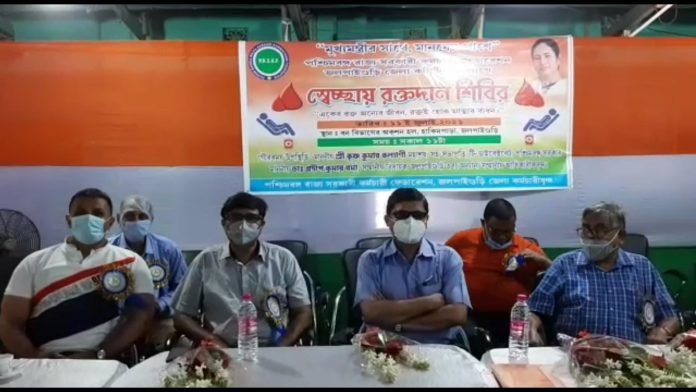 উত্তরবঙ্গ নিউজ : জলপাইগুড়ি : ১১ই জুলাই ২০২১ : রবিবার : রক্তের চাহিদা মেটাতে এগিয়ে এলো পশ্চিমবঙ্গ রাজ্য সরকারী কর্মচারী ফেডারেশনের জলপাইগুড়ি জেলা কমিটি। করোনা পরিস্থিতিতে জলপাইগুড়ি সদর হাসপাতালের ব্লাড ব্যাঙ্কের রক্তের সংকট চলছে। রক্তের চাহিদা মেটাতে এবার স্বেচ্ছায় রক্তদান শিবির অনুষ্ঠিত হল রবিবার হাকিমপাড়া জলপাইগুড়ি ফরেস্ট অকশন হলে। ব্লাড ব্যাঙ্কের সহযোগিতার এই উদ্যোগ গ্রহণ করা হয়েছে। শিবিরে সদর হাসপাতালের চিকিৎসক সঞ্জিতা ব্যানার্জী সহ পাঁচ জনের প্রতিনিধি শিবিরের পরিচালনা করে। শিবির থেকে সংগৃহীত রক্ত জলপাইগুড়ি সদর হাসপাতালের ব্লাডব্যাংকে পাঠানো হয়।