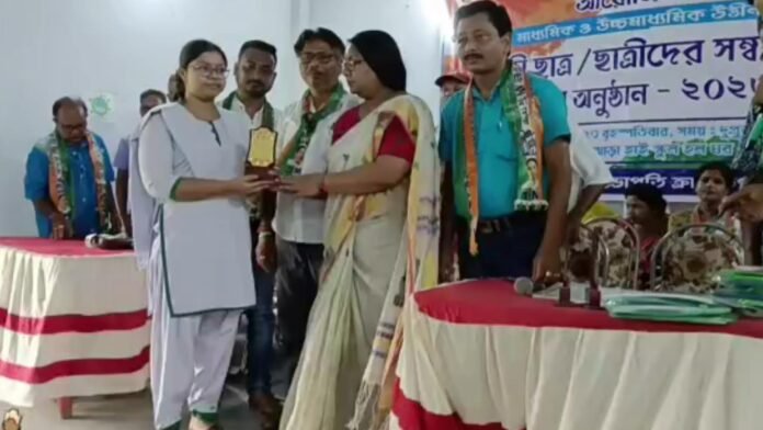 উত্তরবঙ্গ নিউজ : জলপাইগুড়ি : ক্রান্তি : ১লা জুন ২০২৩ : বৃহস্পতিবার : ক্রান্তি ব্লক তৃণমূল কংগ্রেস আয়োজিত ২০২৩ সালে মাধ্যমিক ও উচ্চমাধ্যমিক পরীক্ষায় কৃতী ছাত্র-ছাত্রীদের সম্বর্ধনা জ্ঞাপন অনুষ্ঠান অনুষ্ঠিত হলো দেবীঝোরা উচ্চ বিদ্যালয় হল ঘরে। এদের ক্রান্তি ব্লকের অধীন নয়টি মাধ্যমিক বিদ্যালয় এবং সাতটি উচ্চ মাধ্যমিক বিদ্যালয়ের প্রথম, দ্বিতীয় ,তৃতীয় স্থান অধিকারীদের সম্বর্ধনা দেওয়া হয়। মাল মহকুমার মধ্যে উচ্চমাধ্যমিকে প্রথম স্থান অধিকারী তনুশ্রী রায় এবং মাল মহকুমার মধ্যে মাধ্যমিকে প্রথম স্থান অধিকারী, সপ্তপর্ণা বিশ্বাসকেও সম্বর্ধনা জানানো হয়।